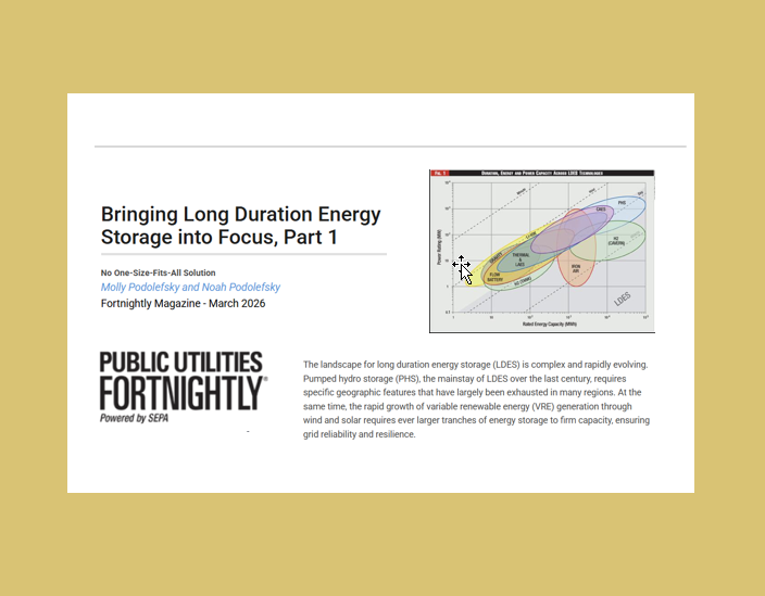 March 1, 2026 Clarum Advisors’ Noah Podolefsky and Molly Podolefsky examine the current state of the market for long duration energy storage (LDES), and best fit technologies for utilities and data center applications.