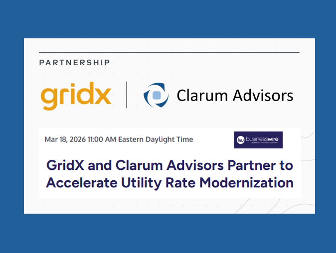 March 18, 2026—Business Wire This partnership between Clarum Advisors and GridX combines best-in-class consulting services and software to help utilities create, approve and operationalize advanced rate structures